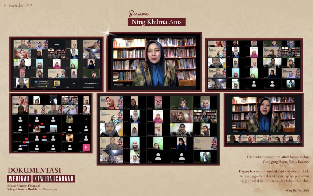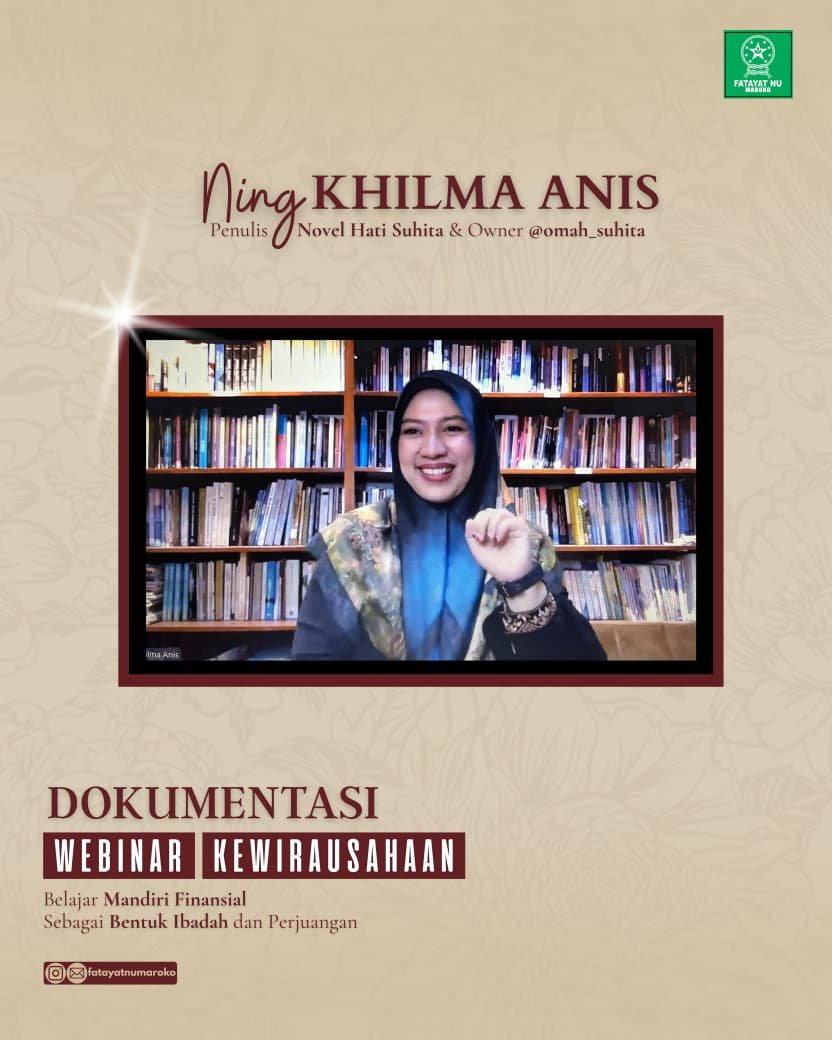 Maroko, 18 November 2025—Bidang Ekonomi dan Koperasi PCI Fatayat NU Maroko sukses menyelenggarakan Webinar Kewirausahaan bertajuk Belajar Mandiri Finansial sebagai Bentuk Ibadah dan Perjuangan. Kegiatan webinar ini menghadirkan narasumber tunggal, Ning Khilma Anis. Beliau adalah Pengasuh Pondok Pesantren Annur Kesilir Wuluhan, Jombang, sekaligus owner Omah Suhita dan Penulis novel best seller Hati Suhita yang telah ditayangkan menjadi film layar lebar dengan ratusan ribu penonton.